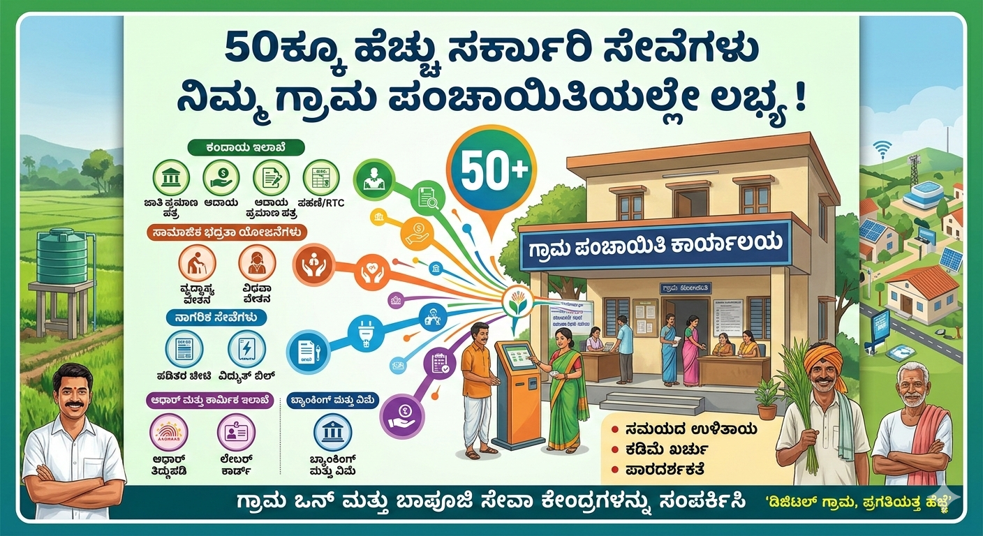 ಹಿಂದೆಲ್ಲಾ ಒಂದು ಜಾತಿ ಪ್ರಮಾಣ ಪತ್ರ ಪಡೆಯಬೇಕೆಂದರೂ ಅಥವಾ ಪಹಣಿ (RTC) ಬೇಕೆಂದರೂ ಹಳ್ಳಿಯಿಂದ ತಾಲ್ಲೂಕು ಕಚೇರಿಗೆ ಅಲೆಯಬೇಕಿತ್ತು. ಸಮಯ ಮತ್ತು ಹಣ ಎರಡೂ ವ್ಯರ್ಥವಾಗುತ್ತಿತ್ತು. ಆದರೆ ಈಗ ಕಾಲ ಬದಲಾಗಿದೆ! ರಾಜ್ಯ ಸರ್ಕಾರದ ಮಹತ್ವಾಕಾಂಕ್ಷೆಯ ಯೋಜನೆಯಡಿ, ನಿಮ್ಮ ಗ್ರಾಮ ಪಂಚಾಯಿತಿಯೇ ಈಗ ಮಿನಿ ವಿಧಾನಸೌಧವಾಗಿ ಬದಲಾಗಿದೆ. ಹೌದು, ಈಗ 50ಕ್ಕೂ ಹೆಚ್ಚು ಪ್ರಮುಖ ಸರ್ಕಾರಿ ಸೇವೆಗಳು ನೇರವಾಗಿ ನಿಮ್ಮ ಗ್ರಾಮ ಪಂಚಾಯಿತಿಯಲ್ಲೇ ಲಭ್ಯವಿವೆ.
